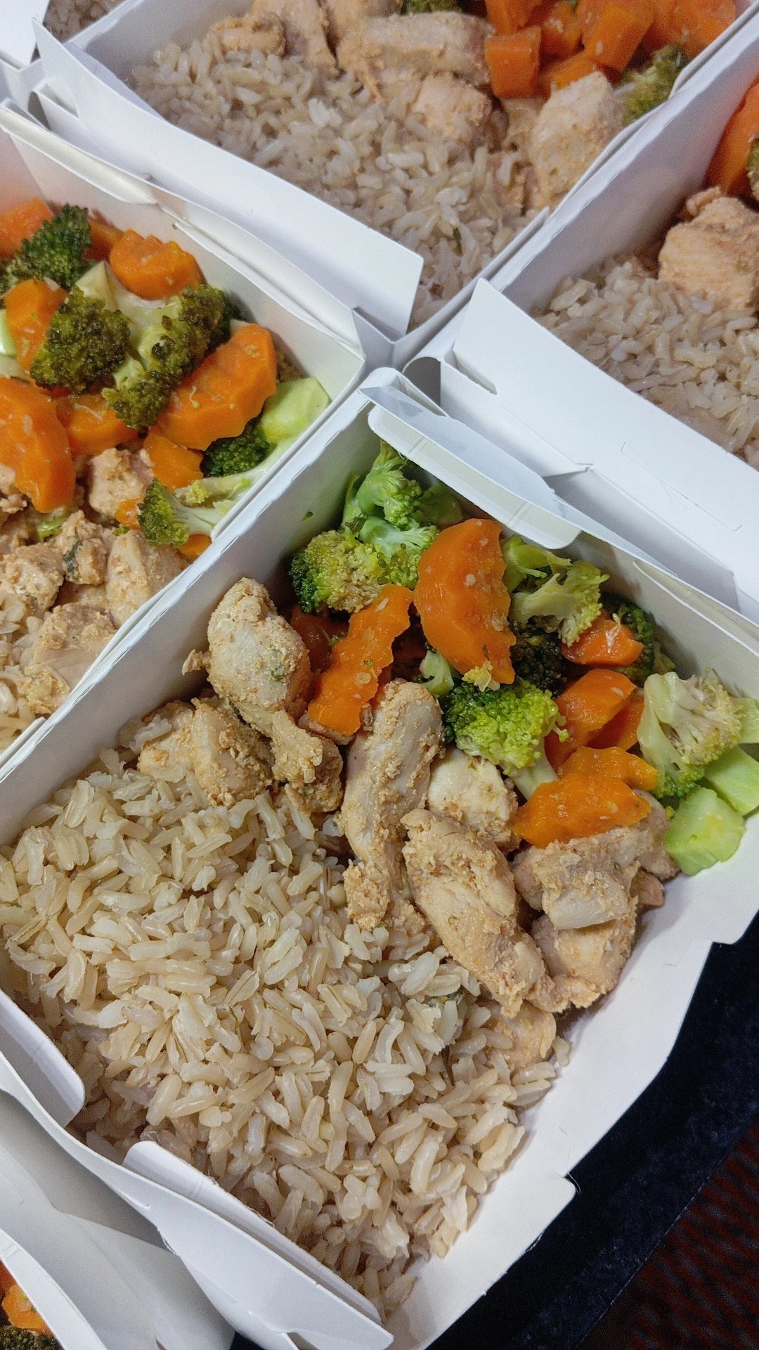 Frango em cubos, Arroz Integral e Legumes quantidade