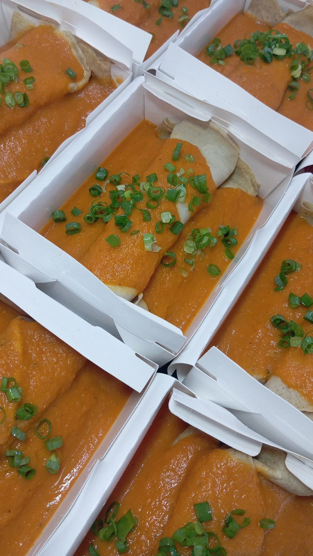 Massa de aveia sem glúten e sem lactose, recheada com alcatra moída temperada artesanalmente e coberta com molho de tomate natural.